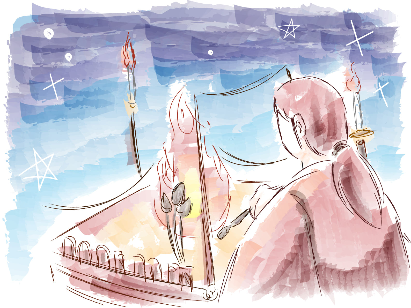 土用とは年に4回、季節の節目にやってきます。1つの季節が終わり次の季節が生まれる準備をする期間を土用といいます。この時期は私たちの身体にも体調不良などの影響を及ぼします。特に有名なのが夏の「土用の丑」でしょう。妙経寺では頭に素焼きの皿をのせてその上でお灸をする「焙烙灸」の加持祈祷を行っています。この祈祷は「頭痛封じ・虫封じ」ともいい、頭痛・偏頭痛や小児の夜泣き・癇の虫(かんのむし)などの病や身体の不調に効果があると言われています。